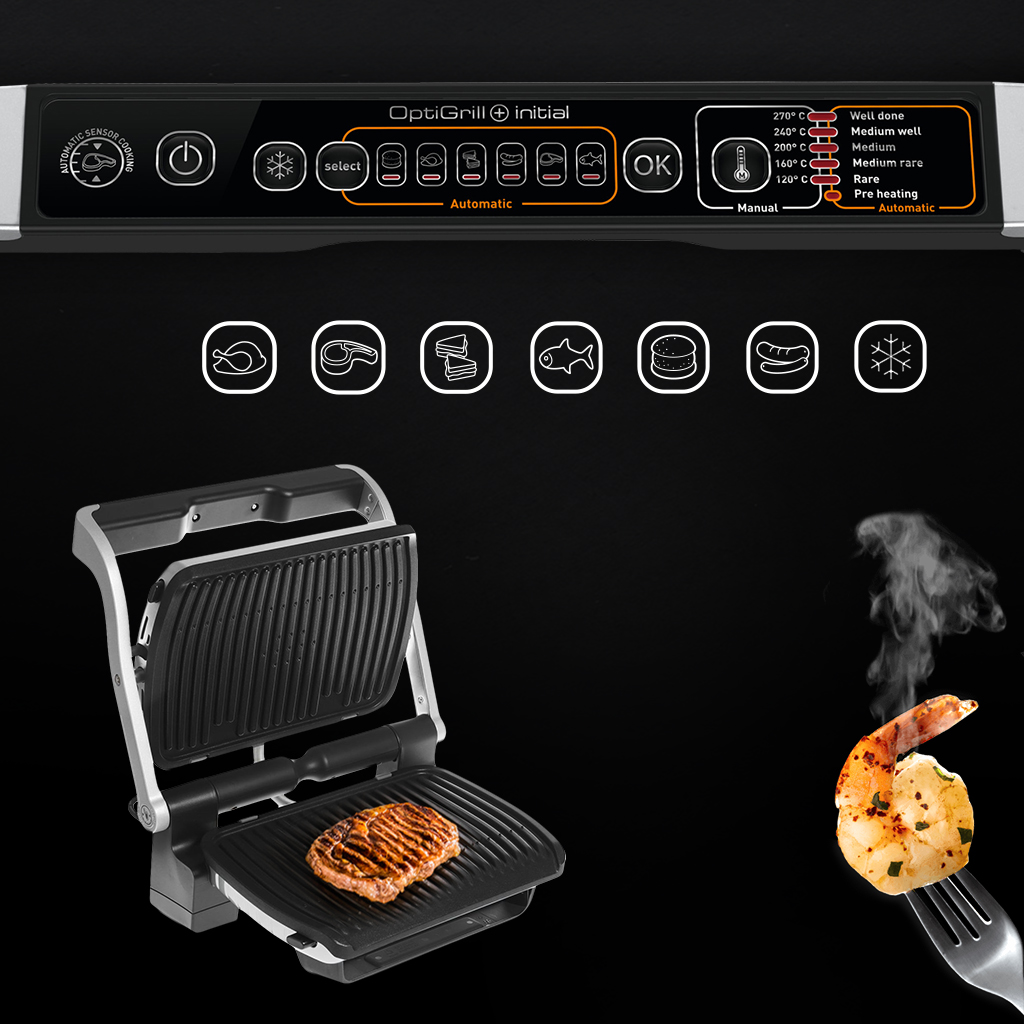 Гриль Tefal GC706D34 обладнаний 6 програмами автоматичного приготування. Гриль готує дивовижно смачні бургери та сендвічі, у ньому передбачені програми для приготування червоного м'яса, риби, птиці, свинини. Використовуючи додатковий режим розморожування, ви зможете швидко приготувати напівфабрикати з морозильника.
