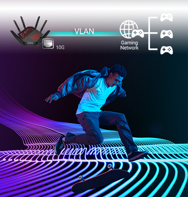 ROG Gaming Network може налаштувати будь-який порт як ігровий, щоб надати максимальний пріоритет ігровому трафіку. Порт LAN 10 Гбіт/с автоматично встановлюється як ігровий для забезпечення максимальної продуктивності.