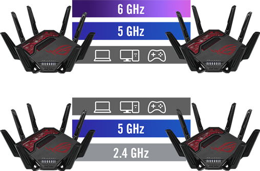 У порівнянні з ROG Rapture GT-AXE11000 (тридіапазонний маршрутизатор стандарту Wi-Fi 6E)