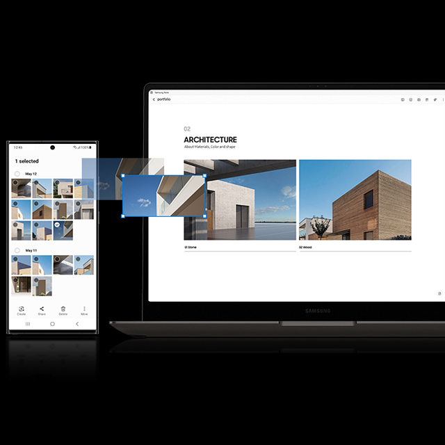 Використовуйте для роботи над ідеями різні пристрої. Завдяки спільному інтерфейсу на пристроях Galaxy ви можете за допомогою однієї миші, клавіатури чи сенсорної панелі перекинути текст і зображення на ПК, а потім повернути їх на телефон.
