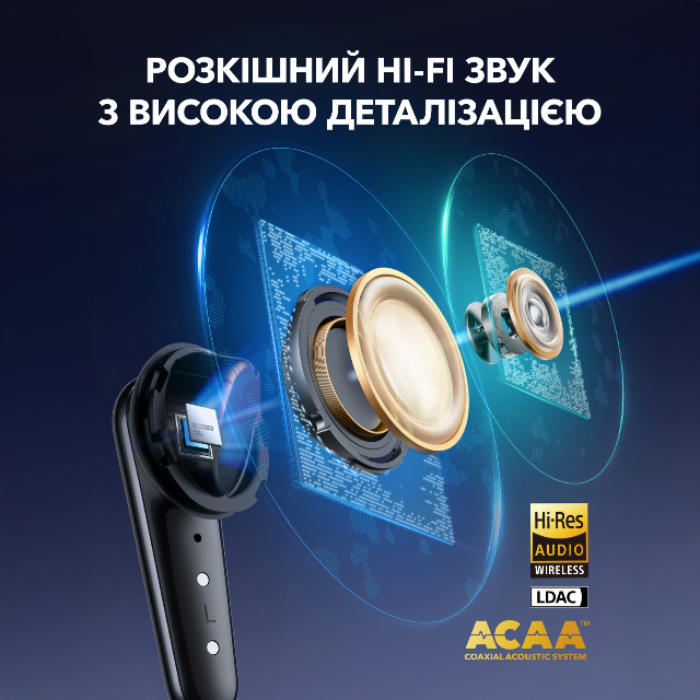 Насолоджуйтесь чітким і насиченим звуком завдяки вдосконаленій акустичній архітектурі ACAA — 10.5-мм динаміку, твітеру з титановим покриттям і цифровому кросоверу. для максимальної продуктивності динаміка.