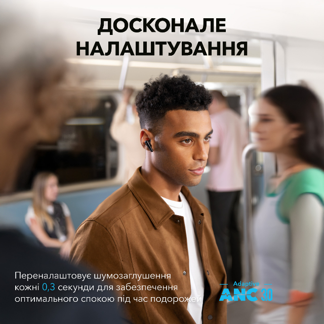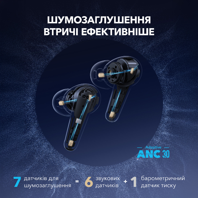 Бездротові навушники soundcore Liberty 4 Pro з системою шумопоглинання адаптуються до постійно мінливого середовища кожні 0.3 секунди, забезпечуючи оптимальне та безперебійне шумозаглушення цілодобово.