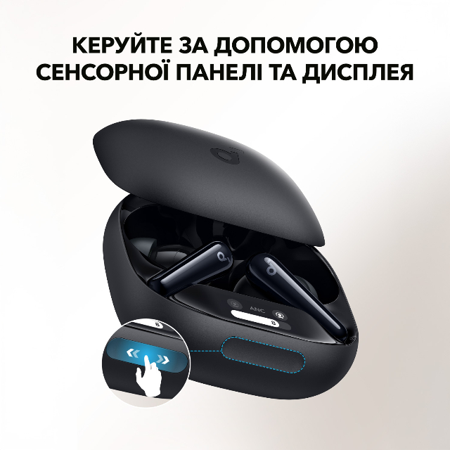 Сенсорна панель і дисплей дозволяють у будь-який час точно налаштувати рівень шумопоглинання простим рухом по корпусу. Завдяки алгоритму зменшення шуму та 6 мікрофонам ці бездротові навушники забезпечують чіткі дзвінки, де б ви не знаходилися.